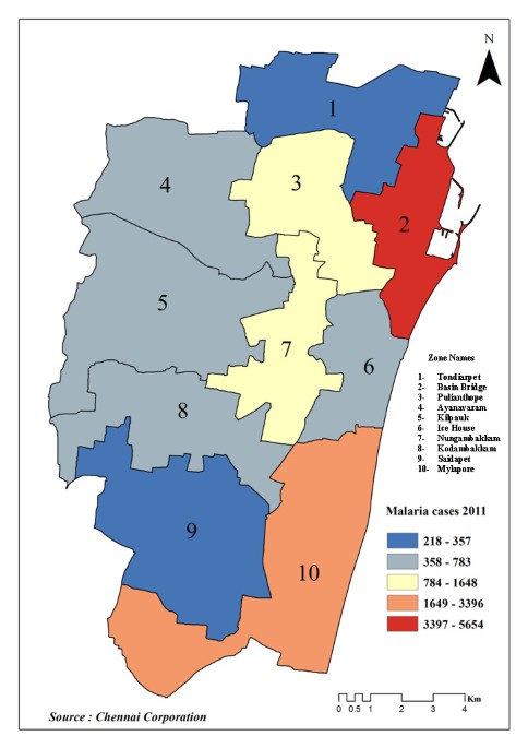 Zone wise malaria positive cases in Chennai 2011. | Download