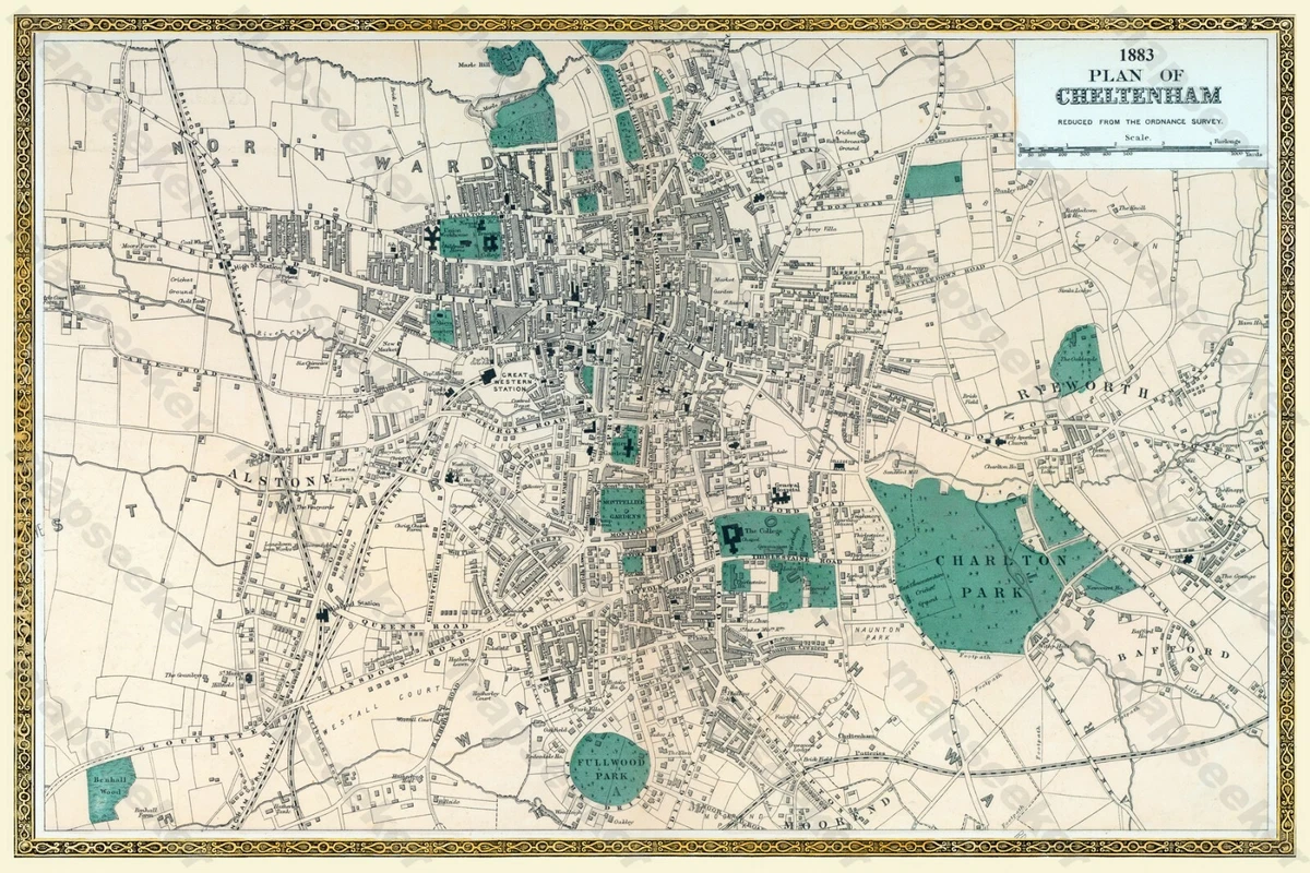 OLD MAP OF CHELTENHAM 1883 BY George W Bacon 30″ x 20